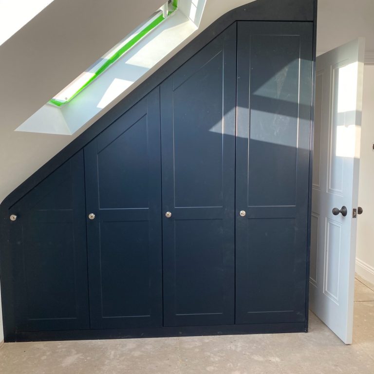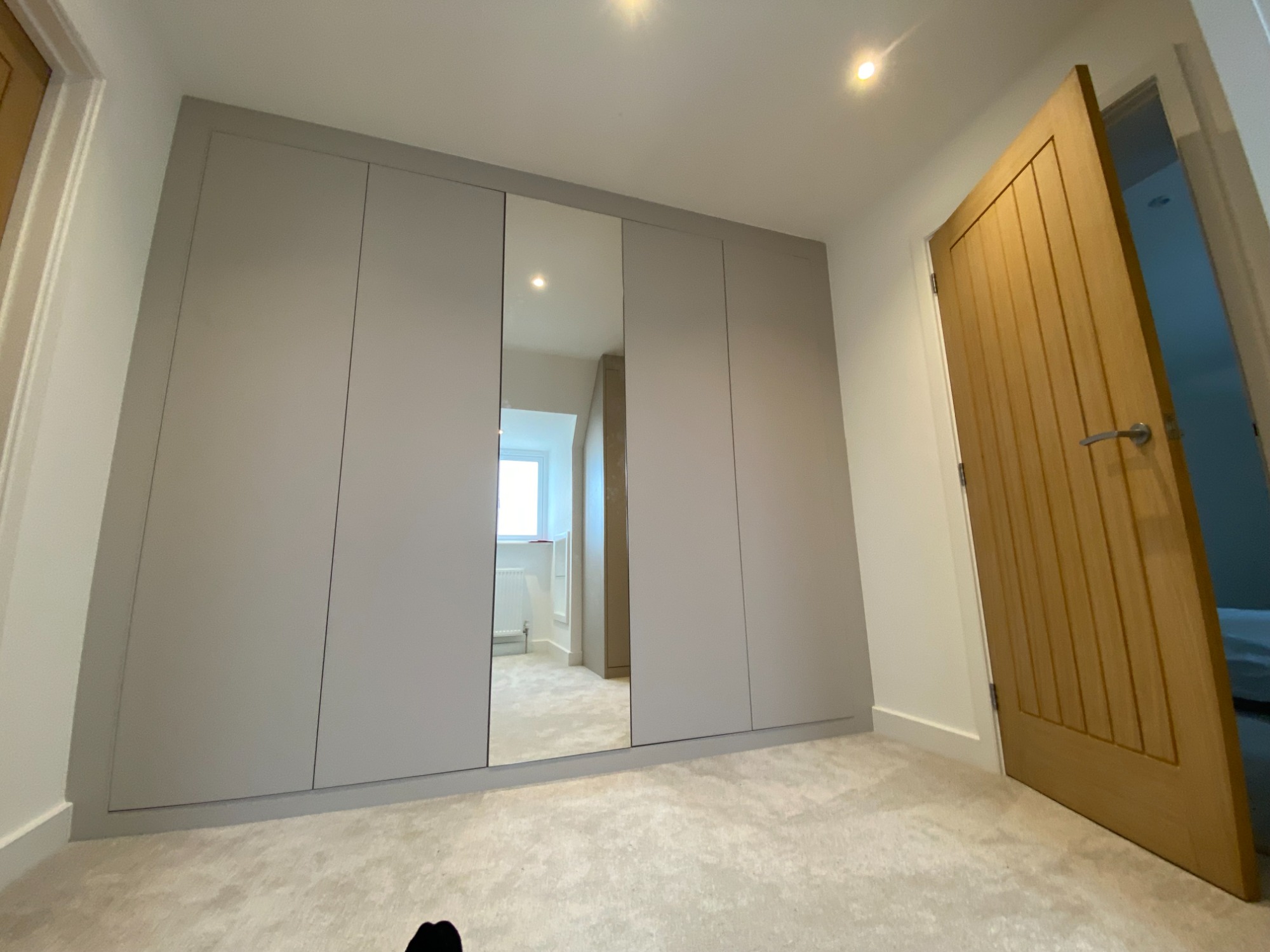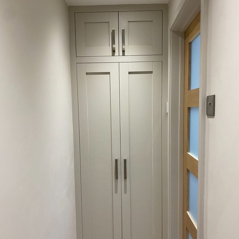 This was all for the same client. A fitted wardrobe with a top box fitted above and set back (to avoid the ceiling light). A utility and a boot room.