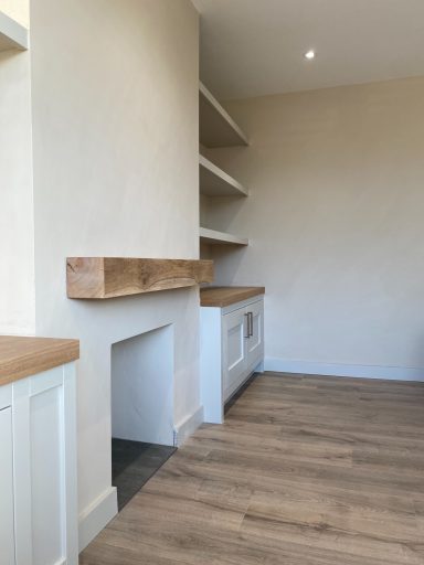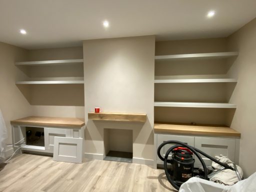 .For this project, we asked to make two low level cabinets, fix five floating shelves and attach a mantle above an old fire place.