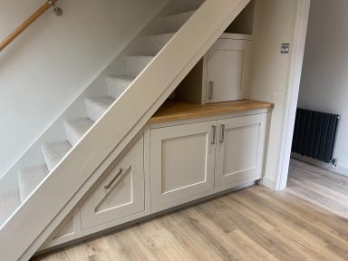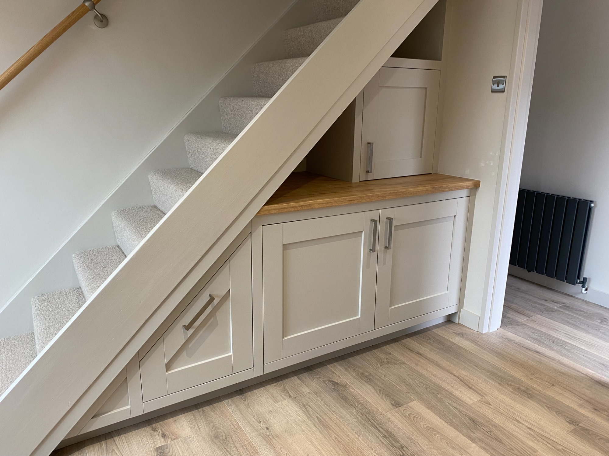 .We can do everything from custom made cabinets to fitting kitchens and hanging new doors. Be it supplying the materials and making them to size, or simply using products off the shelf, like Howdens for example.